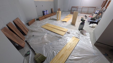 厨房は新規P.Bの上、寒冷紗パテ処理+上塗り2回